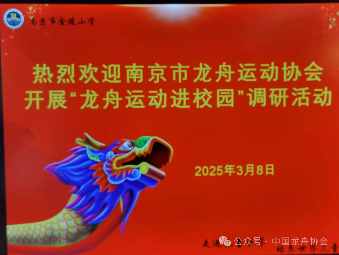 2025年3月8日下午2:30南京市龙舟运动协会,会长、副会长,以及协会的相关人员来到南京市金陵小学会议厅,开展“龙舟运动进校园”调研活动。出席的领导是:会长 李自强;副会长 张利海、曹斌、吴健珑、王军;名誉副会长 孙兵;秘书长 陆洋;南京市金陵小学党委书记 林慧敏;南京市金陵小学校长 陈健。