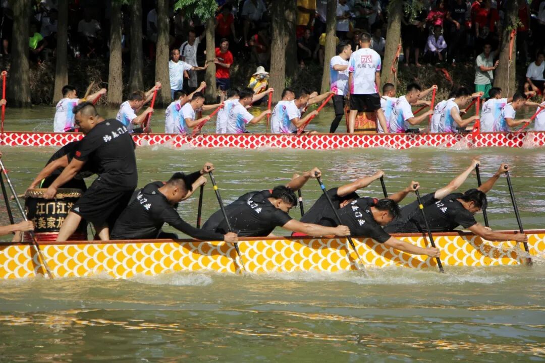 决赛阶段更是扣人心弦。首先进行的是初赛每小组第三名之间的对决,他们为了荣誉全力以赴。紧接着,初赛每小组第二名之间展开较量,竞争愈发激烈。而最令人瞩目的当属第三轮初赛每小组第一名之间的巅峰对决,现场气氛达到了高潮。最终,经过激烈的角逐,二圣公龙舟队凭借出色的表现勇夺第一名,乐途龙舟队紧随其后获得第二名,乌纱龙舟队荣获第三名。