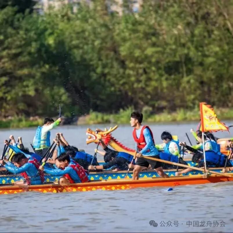 鼓声三下红旗开,数条蛟龙浮水来。鼓槌落,船桨起,一瞬间,岸上旌旗猎猎、锣鼓喧天、呼声如雷,江面挥桨劈浪、水花激溅、舟行如飞。队员们伴着锣鼓敲打的节奏一边喊着号子,一边弯腰低头划桨,展现出一往无前的拼搏斗志和团结齐心的合作精神。