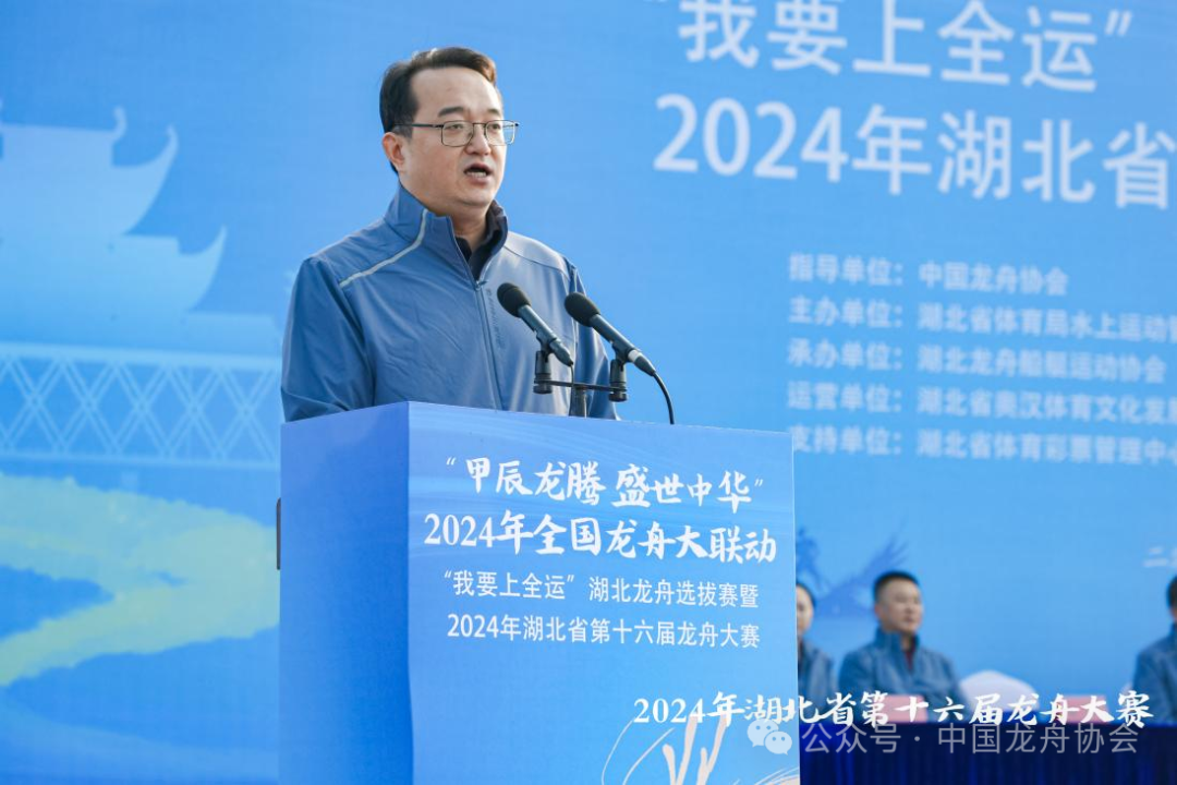 中国龙舟协会副主席沈冬生、中共洪山区委书记林文书,湖北省体育局水上运动管理中心主任、湖北龙舟船艇运动协会会长沈浩等领导出席本次活动。洪山区人民政府副区长袁永康现场致辞,他表示,洪山区科教资源突出,辖区内有高校35所,也被“誉为大学之城”文化底蕴深厚,人才辈出。同时洪山区山水资源禀赋优越,有东湖、南湖、汤逊湖等近20个湖泊,水域约100平方公里。得天独厚的水上优势为本次龙舟竞渡保驾护航。龙舟破浪前行,不仅弘扬中华民族的传统文化,更让大家感受青年学子朝气蓬勃的精神。