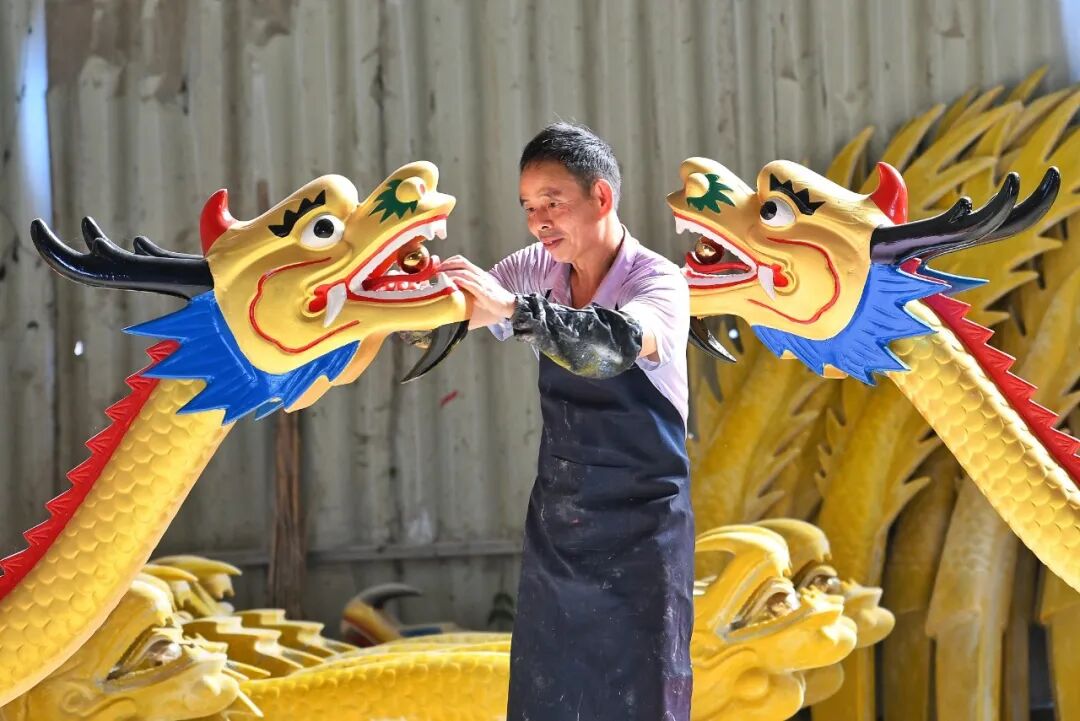 在这些村镇,龙舟制造已经发展成为特色产业,也是实实在在的富民产业。此前,网上热传,广州和佛山的不少龙舟划手们使用的是价格不菲的碳纤维桨。其实,碳纤维桨的价格并不像网传那么夸张,多在几百元到一千多元之间。但碳纤维桨的广泛使用,折射出龙舟器材制造业的变化。随着现代龙舟赛的标准化需求扩大,龙舟的制造工艺在不断改进,在传统的木龙舟、木桨之外,还有了玻璃钢制龙舟、碳纤维桨等。在产业链中游,据相关机构统计,到2022年,我国的龙舟队已遍布全国20多个省区市和地区。从请教练到租场地,再到队员们的吃住行、训练设备等,衍生出一个不小的市场。在产业链的下游,与足球、篮球等大众赛事一样,承办龙舟赛事能够为当地带来显著经济效益,已成为共识。当前国内龙舟竞赛组织管理更加标准化和规范化,竞赛体系愈加完善。这些年,各地大型龙舟赛的举办规格不断提升,参赛队伍、人数不断创下新高。比如,2023年6月在广州举行的广州国际龙舟邀请赛,共有125支龙舟队、近5000名运动员报名参赛,据不完全统计,现场观看人数近100万人次。
