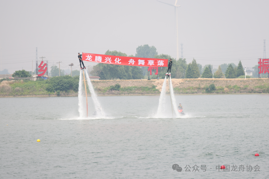 赛事期间,醒狮表演、龙舟点睛、戏曲歌舞等水乡民俗表演轮番登场,摩托艇、桨板、冲浪板表演以及惊险刺激的水上飞人等水上表演让现场的市民游客大呼过瘾,纷纷拍照分享。